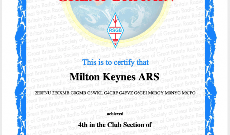 The results are in for the VHF ‘lock down’ NFD and MKARS achieved 4th place (out of 74) in the UK.