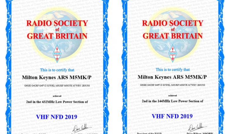 The Club was delighted to receive a 2M and 70cm award in VHF NFD from the results out this week. We entered the low power section, 25W, using mostly SSB with some CW, achieving 2nd place on both bands.